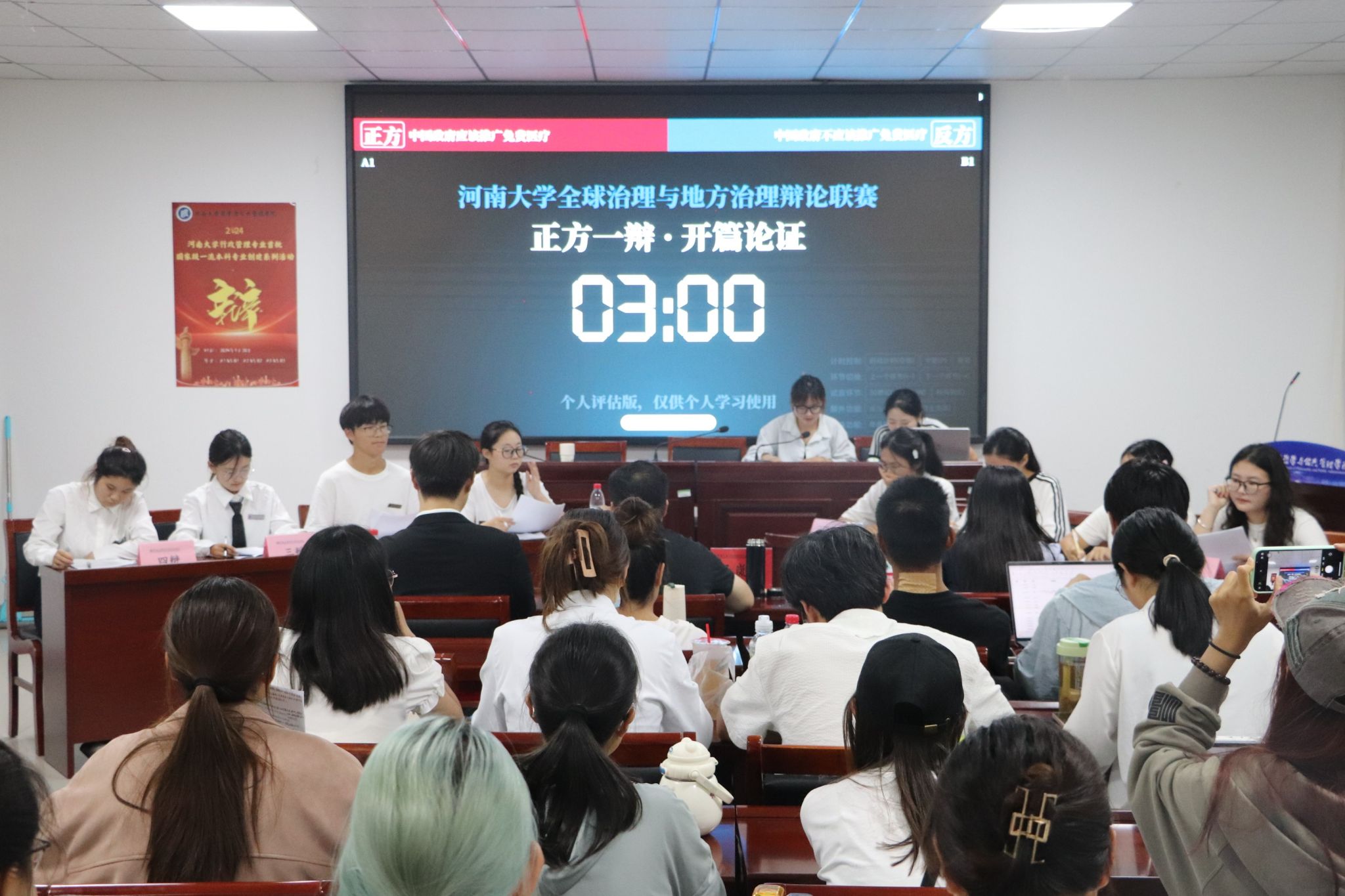 10月25日,我院行政管理专业“全球治理与地方治理(2024年度)”辩论联赛第五轮比赛于院楼411举办,2021级韦梦梦、许吉利担任学生评委,部分2022级,2023级行政管理专业学生到场观赛。