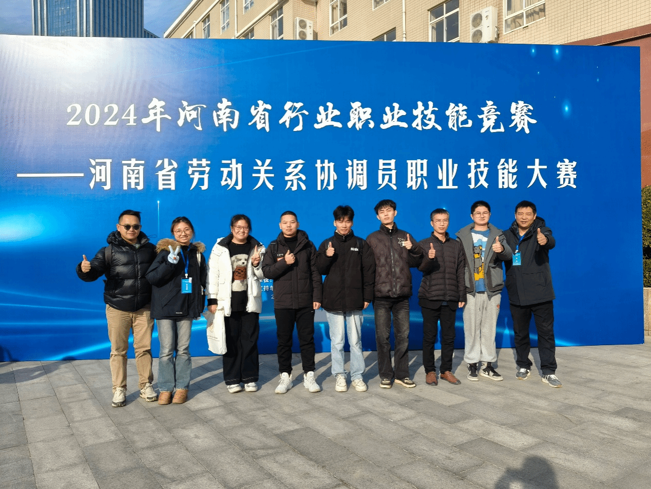 师生积极投身备赛工作。开封市人社局组织的赛前培训和动员活动中,参赛学生认真学习劳动关系协调理论知识与实操技能,李强老师全程指导,针对竞赛中的理论考试和模拟实操环节进行专项训练,帮助学生提升解决实际问题的能力。2024 年 12 月20 -22日,参赛团队赴郑州参加省级大赛,与来自全省的优秀选手同场竞技,以良好的职业素养和出色的临场发挥,在全省决赛中崭露头角。