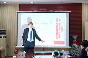 萨夫金教授以“中国一带一路”与欧亚经济联盟经济战略的对接为题,向我院师生呈现了一场精彩的全英文讲座,崔忠洲老师在现场为大家作了细致的翻译。萨夫金教授从地缘政治等多个角度解读我国的“一带一路”,并且提出“亚投行”加速了亚洲区域的基础设施建设和经济一体化的进程,两者皆加强中国及其他亚洲国家和地区的合作。在讲座的提问环节,萨夫金教授就同学们提出的美国TPP协定、中俄合作等问题,纷纷予以回答,并表明自己的看法。整个讲座令在场师生受益颇多。