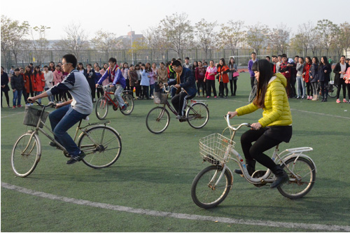 协办的“首届趣味运动联谊赛”在金明校区东操场举行。百余名2013级本科生参加了此项活动。