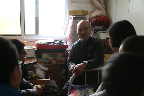 2014年11月22日下午两点,我院几名研究生代表和本科生代表一同来到开封市离退休职工爱心护理院看望黄魁吾教授,现已88岁高龄的黄教授见到学生们非常高兴,虽然嗓音已有些浑浊,但他仍然思维清晰,表达清楚简洁,井井有条的与同学们进行交谈。