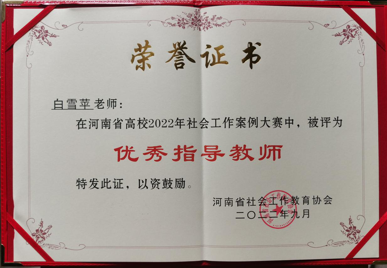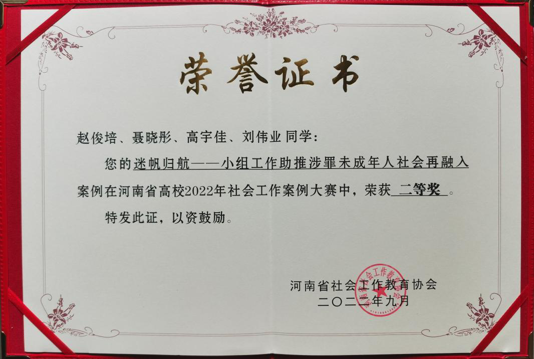 承办的河南省高校2022年社会工作案例大赛结果公布,我院选送的案例《迷帆归航——小组工作助推涉罪未成年人社会再融入》在省内17所高校、49支队伍中脱颖而出荣获本科生组二等奖。团队指导教师白雪苹获河南省高校2022年社会工作案例大赛优秀指导教师。