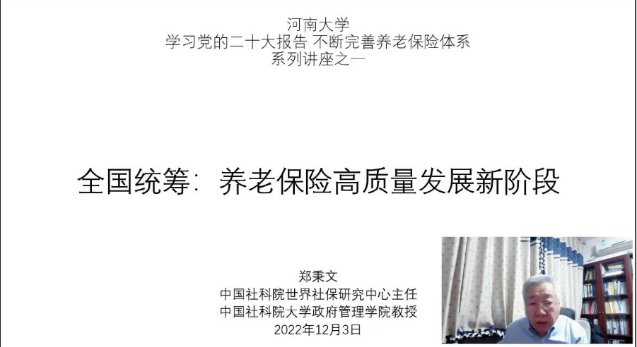 世界社保研究中心主任郑秉文教授在线作了题为《全国统筹:养老保险高质量发展阶段》的学术报告,此次讲座由我院凌文豪教授主持,公共管理相关学科师生通过线上的方式共同参与了此次讲座。