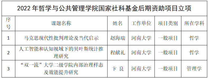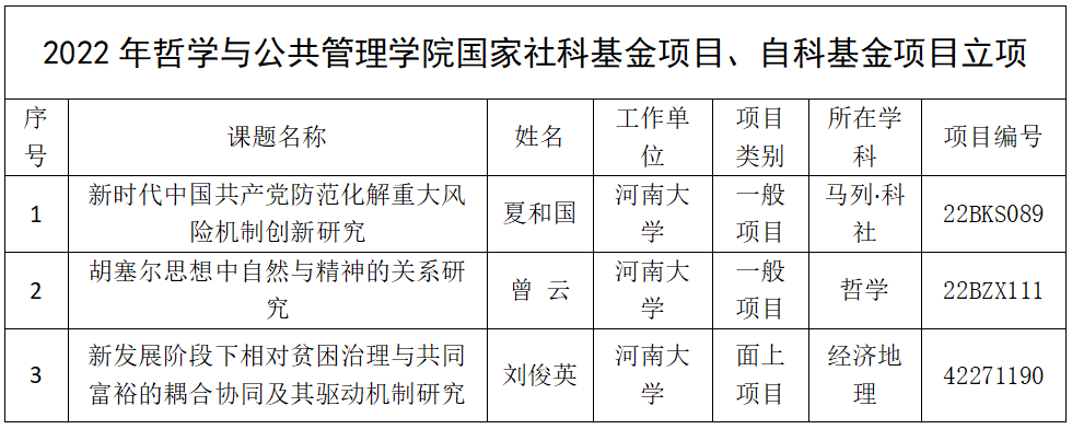 近日,全国哲学社会科学规划办公室公布了2022年度国家社科基金后期资助暨优秀博士论文出版项目的立项名单。我院赵海瑞、程献礼、卞良三位老师申报的2022年度国家社科基金后期资助项目获批立项;加上之前的夏和国、曾云两位老师获批的国家社科基金项目、刘俊英老师获批的国家自科基金项目,我院2022年度共有6项国家级项目获批立项。