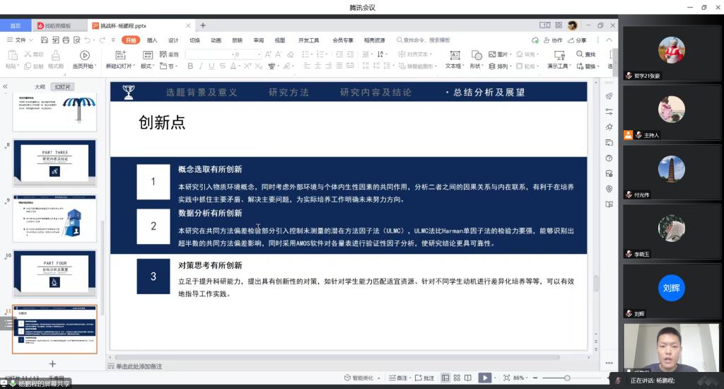 大学生课外学术科技作品竞赛答辩于线上举行。行政管理系教授刘辉、劳动与社会保障副教授李晓玉、社会工作系副教授付光伟担任本次答辩评委,15支入围决赛团队参加答辩。