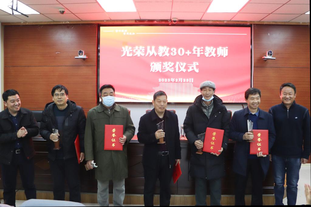 三秩芳华传薪火,桃李满园名远扬。在热烈的掌声中,庞洪铸、韩军喜、张胜利、郭桥等16位从教30+年以上教师从院长姬志闯手中接过证书和奖杯。党鸿军向受表彰的老师表示热烈祝贺,并希望全院教职工以他们为榜样,弘扬优良传统,忠诚于党和人民的教育事业,坚守为党育人、为国育才的使命担当,爱岗敬业,奋发进取,不断开拓创新,以更加执着的追求、更加广阔的胸怀投入到教育事业中,为推动免费无码a片
