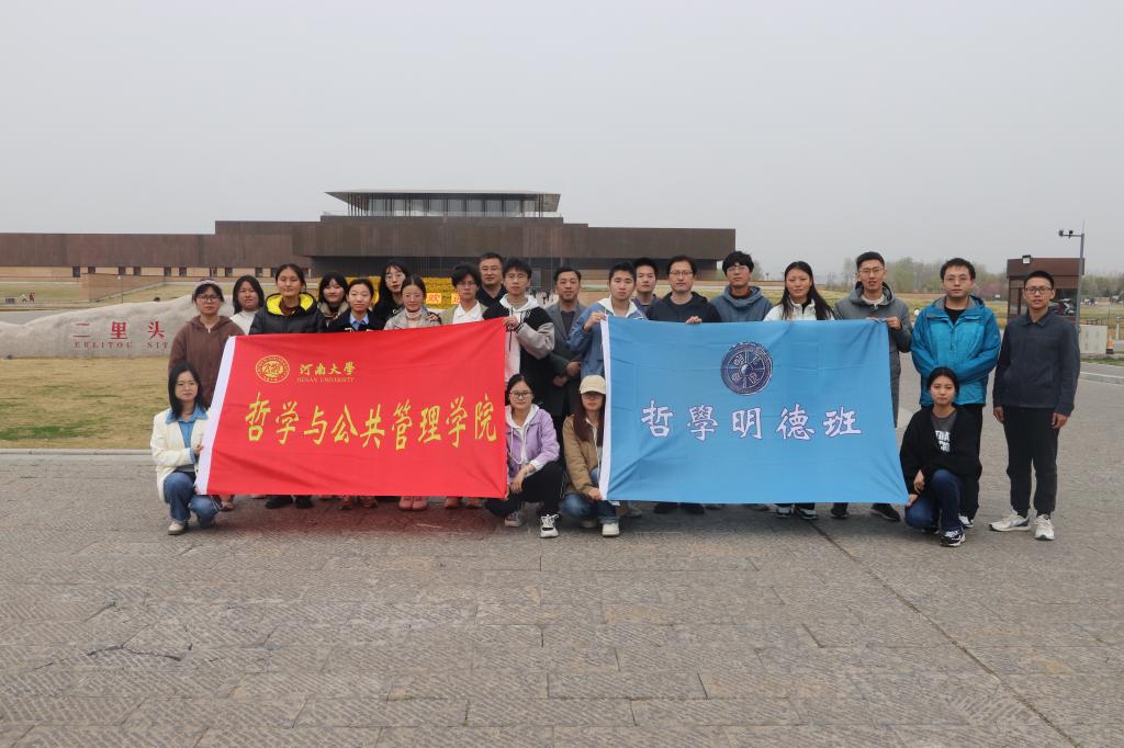 哲学专业“明德计划”实验班开展“华夏文明探源”研学活动。副院长赵炎峰、哲学专业“明德计划”负责人叶平和班主任孙少飞共同带队,2020级和2021级哲学明德班全体成员参加此次研学活动。洛阳陌上春三月,学子行来细问询。本次研学活动以“华夏文明探源”为主题,研学团依次前往洛阳偃师二里头夏都遗址博物馆、洛阳博物馆和洛阳龙门石窟进行研学交流,探索华夏文明的起源和发展历程。