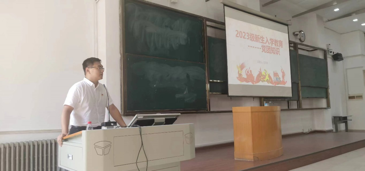 党委办公室负责人王天宇从中国共产党诞生、中国共产党伟大成就、入党条件的程序和要求、共青团知识四个方面为新生讲解党团知识。他以历代共产党人的信念、担当为题,号召新生积极向党组织靠拢,为党和国家发展奉献自身力量。