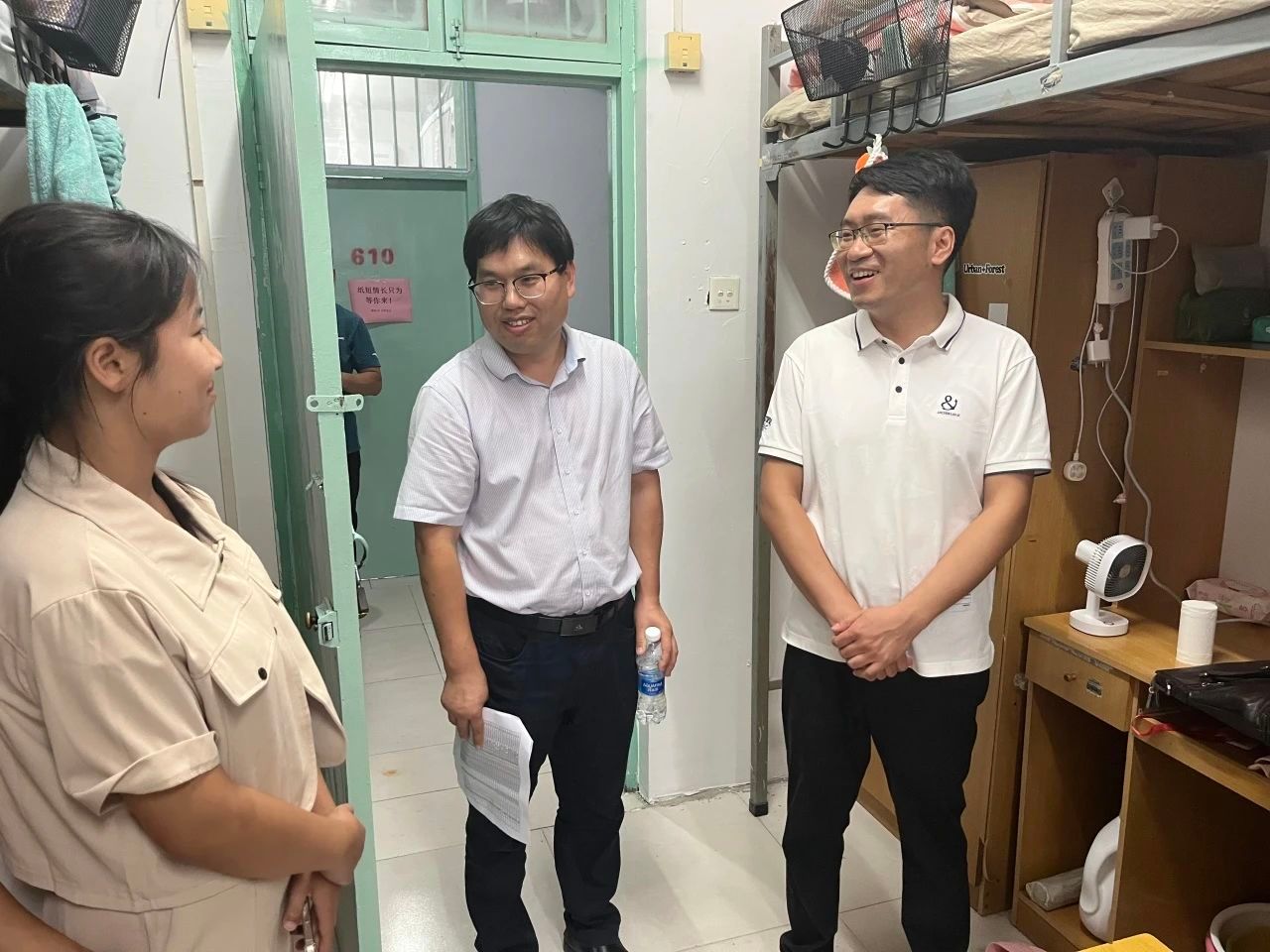 党政领导班子成员、各专业系主任及各专业教工支部书记等一行深入2023级本科新生宿舍进行慰问看望,与学生们面对面交流。