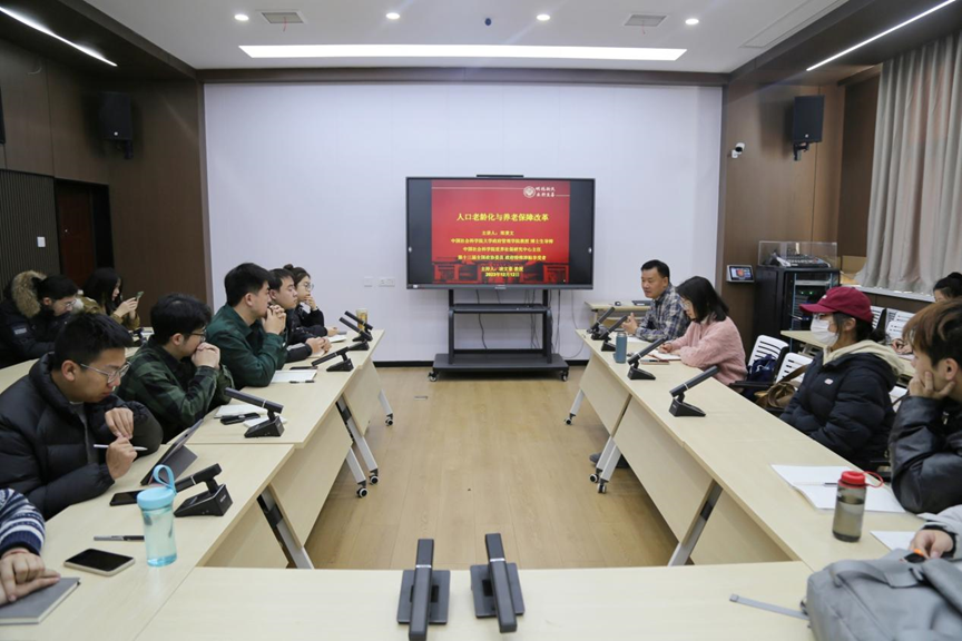 郑秉文教授在线上为我院师生分别作了题为《人口老龄化与养老保障改革》和《五篇金融大文章与多层次社保体系》的学术讲座。此次讲座由我院劳动与社会保障专业凌文豪教授主持,劳动与社会保障、行政管理与社会工作专业部分青年教师、研究生通过线上线下相结合的方式共同参加。
