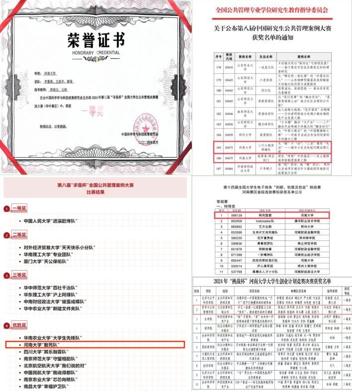 不断强化和优化社会实践教学,以大赛为抓手,推进“以赛促教、以赛促学、以赛提能、以赛促用”,劳动与社会保障系李晓玉教授、行政管理系元帅博士指导的由行政管理专业李董祺、王浩宇,劳动与社会保障专业解菲三名同学组成的参赛团队,在第三届“寻是杯”全国大学生公共管理决策模拟大赛(华中赛区)中斩获一等奖;行政管理系刘辉教授指导的“政青春-师出同门”团队的作品和社会工作系朱磊副教授指导的“三只小熊突然碰队”团队的作品在来自全国260所院校的2597支队伍中脱颖而出,荣获优秀奖;行政管理系李有学副教授、吴岚波副教授担任指导老师,行政管理专业韦梦梦、朱佳凝、龚滔、张向前,社会工作专业李菁如五位同学撰写的案例分析报告获得全国优胜奖,创造了我校学子在该赛事的最好成绩;由李晓玉教授指导,2022级行政管理专业陈宛玥等同学组成的阿闯面塑团队在第十四届全国大学生电子商务“创新、创意及创业”挑战赛中荣获河南赛区省级选拔赛特等奖;李晓玉教授指导的团队参赛项目《手艺·拾遗——让面塑搭上文创“快车”,做非遗传承的引潮者》荣获2024年“挑战杯”免费无码a片