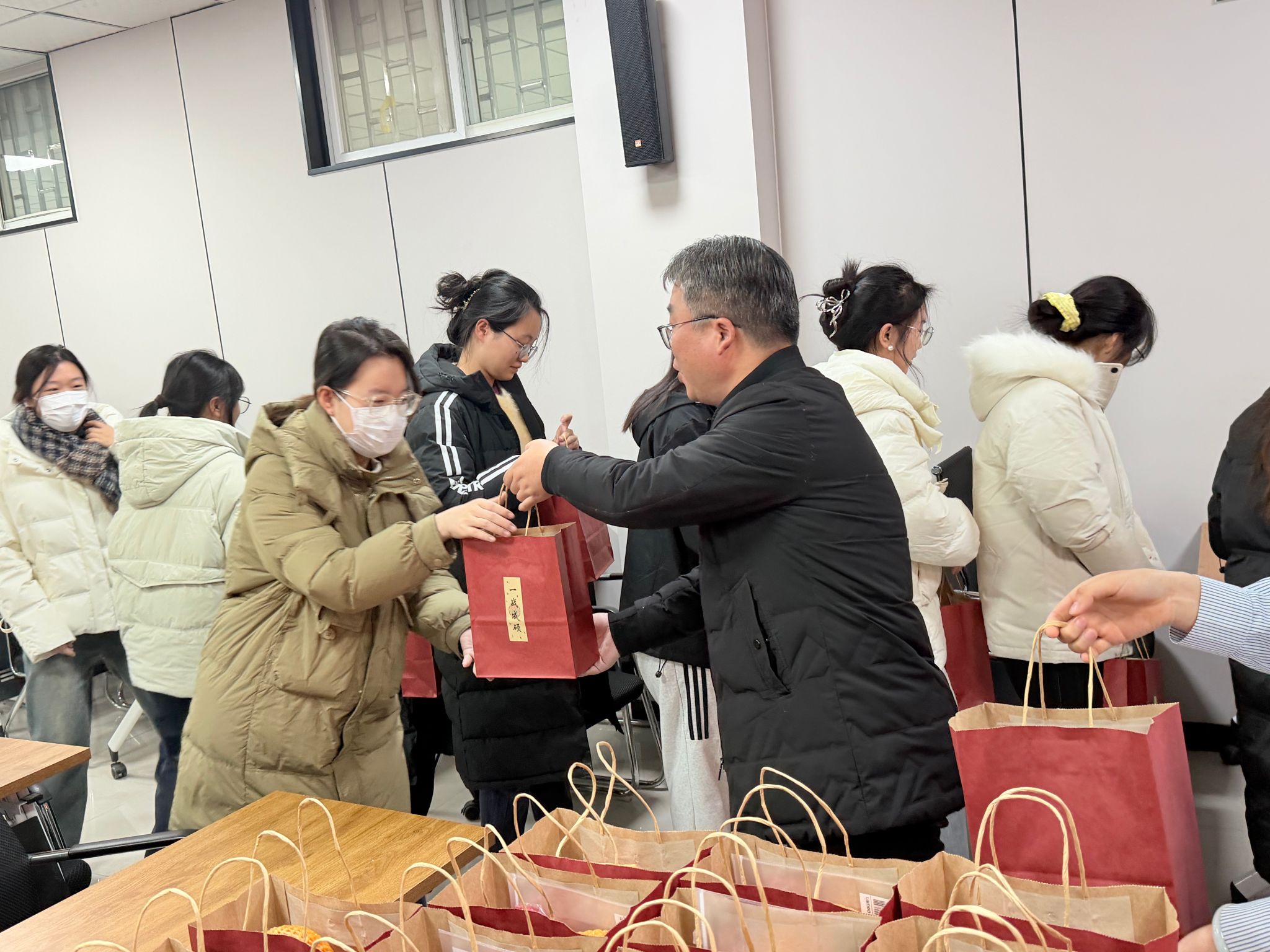 随后,参会领导和老师向考研学子送去祝福并发放“温暖礼包”,鼓励大家坚守初心,以定力、耐力、魄力迎接人生的重要考场。福袋玲珑,情谊深长:饱含甜蜜的苹果与糖果寓意“苹”安顺遂,为奋斗时光注入能量与温暖;向日葵钥匙扣寓意“一举夺魁”的,承载着对学子旗开得胜的美好祝愿。学子们接过这份心意满满的祝福,惊喜与感动溢于言表,纷纷表示将带着免费无码a片 的殷切期盼,在考研征程中坚定前行。